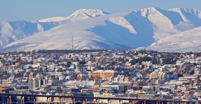Salah satu contoh di Kota Tromso, yang terletak di jantung wilayah utara Norwegia, sekitar 350 km sebelah utara Lingkaran Arktik, Norwegia. Pada periode akhir Mei hingga akhir Juli, kota kepulauan yang dikelilingi oleh pegunungan yang tertutup salju ini mengenal fenomena "matahari tengah malam", di mana matahari tidak terlihat terbenam bahkan hingga tengah malam.