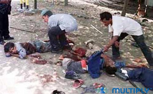 Pada saat itu tiba-tiba satu truk milik TNI bergerak dan sambil berlalu, dari atas truk para tentara melempari batu ke arah masyarakat, dan masyarakat yang terpancing balas melempari batu ke atas truk. Pada saat yang hampir bersamaan juga seorang anggota tentara berlari kearah semak-semak dan masyarakat yang terpancing mengejarnya. Tiba-tiba dari arah semak itu terdengar satu letusan senjata. Letusan senjata itulah yang seperti sebuah "komando" disusul oleh rentetan serangan. Pembantaian segera dimulai. Tepat jam 12.30 WIB.