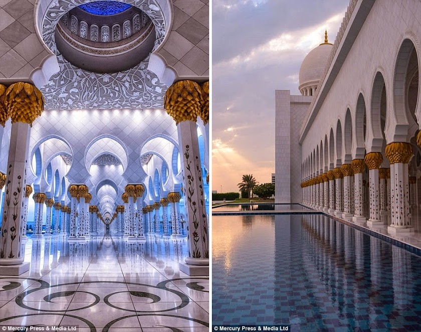 KEINDAHAN Masjid Raya Sheikh Zayed di Abu Dhabi ini benar-benar mengundang decak kagum. Sampai-sampai, media di Inggris seperti Daily Mirror dan Daily Mail menampilkan foto-foto masjid di ibu kota Uni Emirat Arab (UEA) itu hasil jepretan fotografer asal Inggris, Julian John.