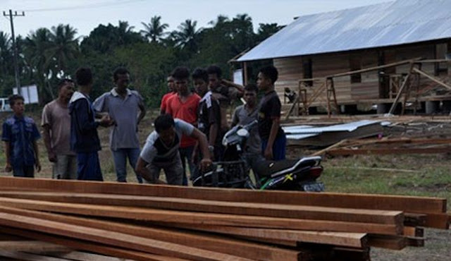 Tak ketinggalan mobil bak dan truk hilir mudik ke lokasi ICS dengan membawa muatan puluhan hingga ratusan kayu, triplek tebal, asbes, semen, seng dan bahan bangunan lain yang diangkutnya. Tak perlu dikomando, kerumunan orang itu pun, membantu menurunkan kayu dengan cekatan.