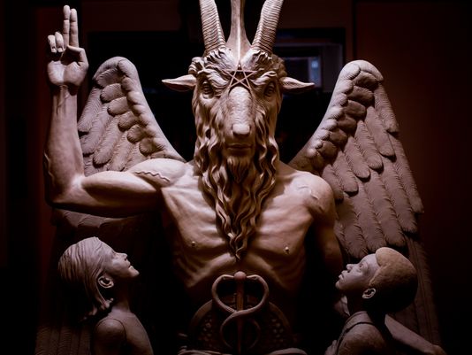 Baphomet adalah manusia berkepala kambing, yang diyakini pengikut setan sebagai penggambaran iblis. Patung Baphomet di Detroit terbuat dari perunggu dengan berat satu ton.