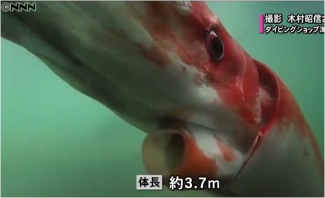 TOYAMA (atjehcyber) – Cumi-cumi raksasa berukuran 4 meter terekam kamera sedang berenang di sebuah pelabuhan yang berlokasi di Prefektur Toyama, Jepang.