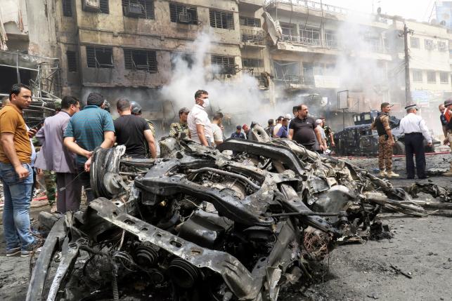 IS yang saat ini sedang terkepung di Fallujah, mengatakan bahwa satu bom dilakukan dengan bom mobil, dan yang lainnya dengan rompi bunuh diri.